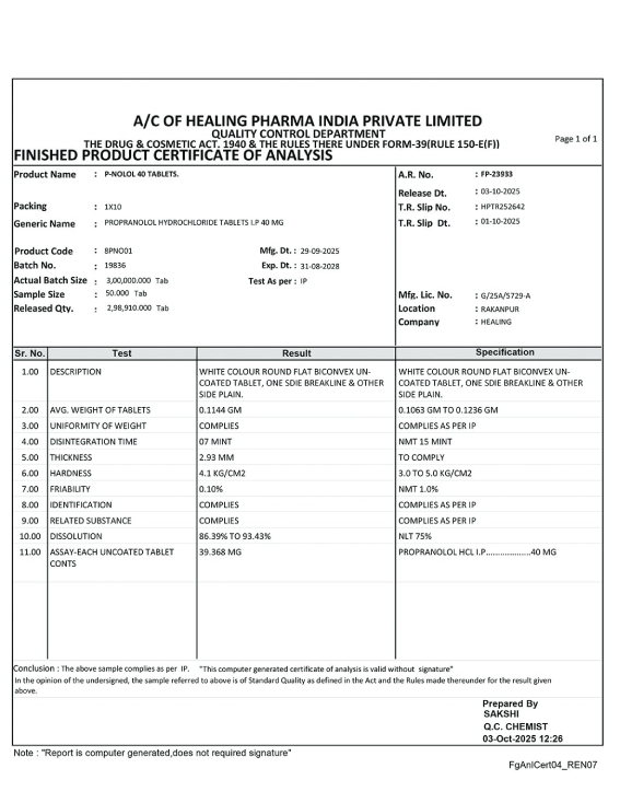 インデラル ジェネリック P- NOLOL 40mg 300錠